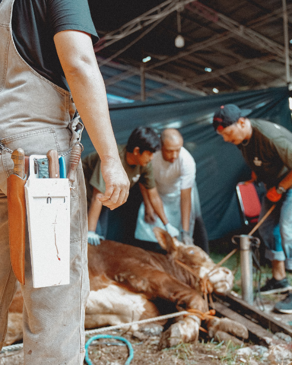 Menyembelih sendiri dipandu tenaga ahli atau diwakilkan